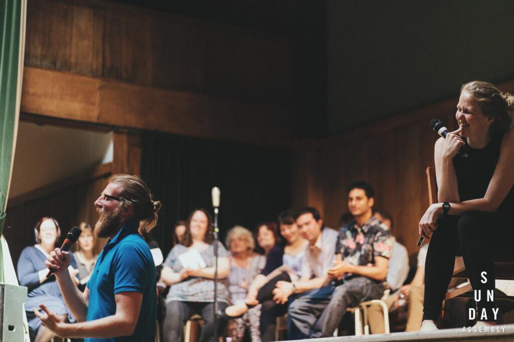 The Sunday Assembly was started by Sanderson Jones and Pippa Evans, two comedians who were on the way to a gig in Bath when they discovered they both wanted to do something that was like church but totally secular and inclusive of all—no matter what they believed.