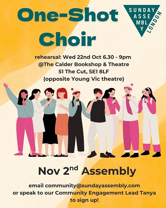 Talking of choirs, would you like to join our next community choir: rehearsing on 22nd October and performing a song at our assembly on 2nd November? Or perhaps you like to make something for the Halloween Bake Off that’ll be taking place at our assembly on 19th October? Find out more about our assembly-adjacent activities here.